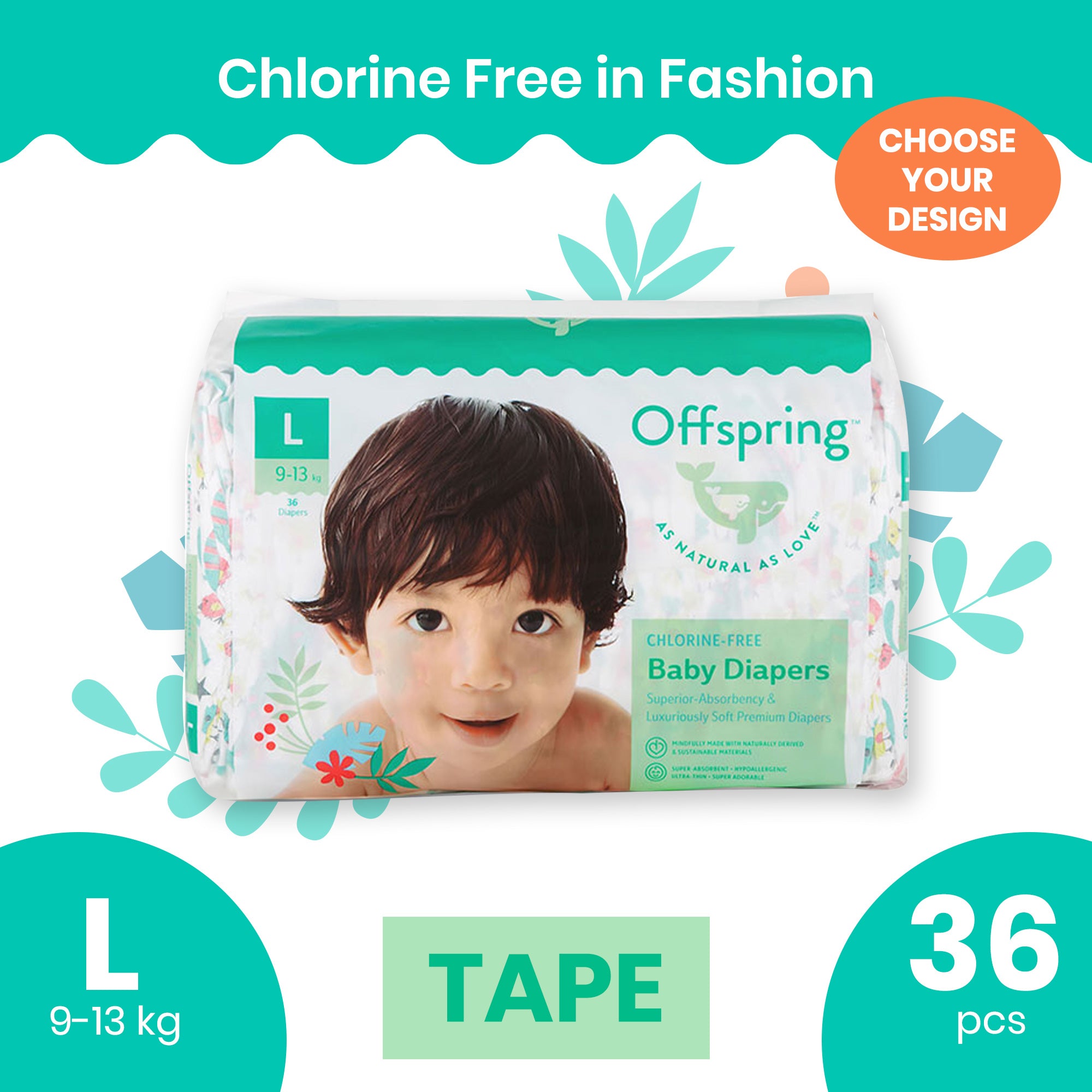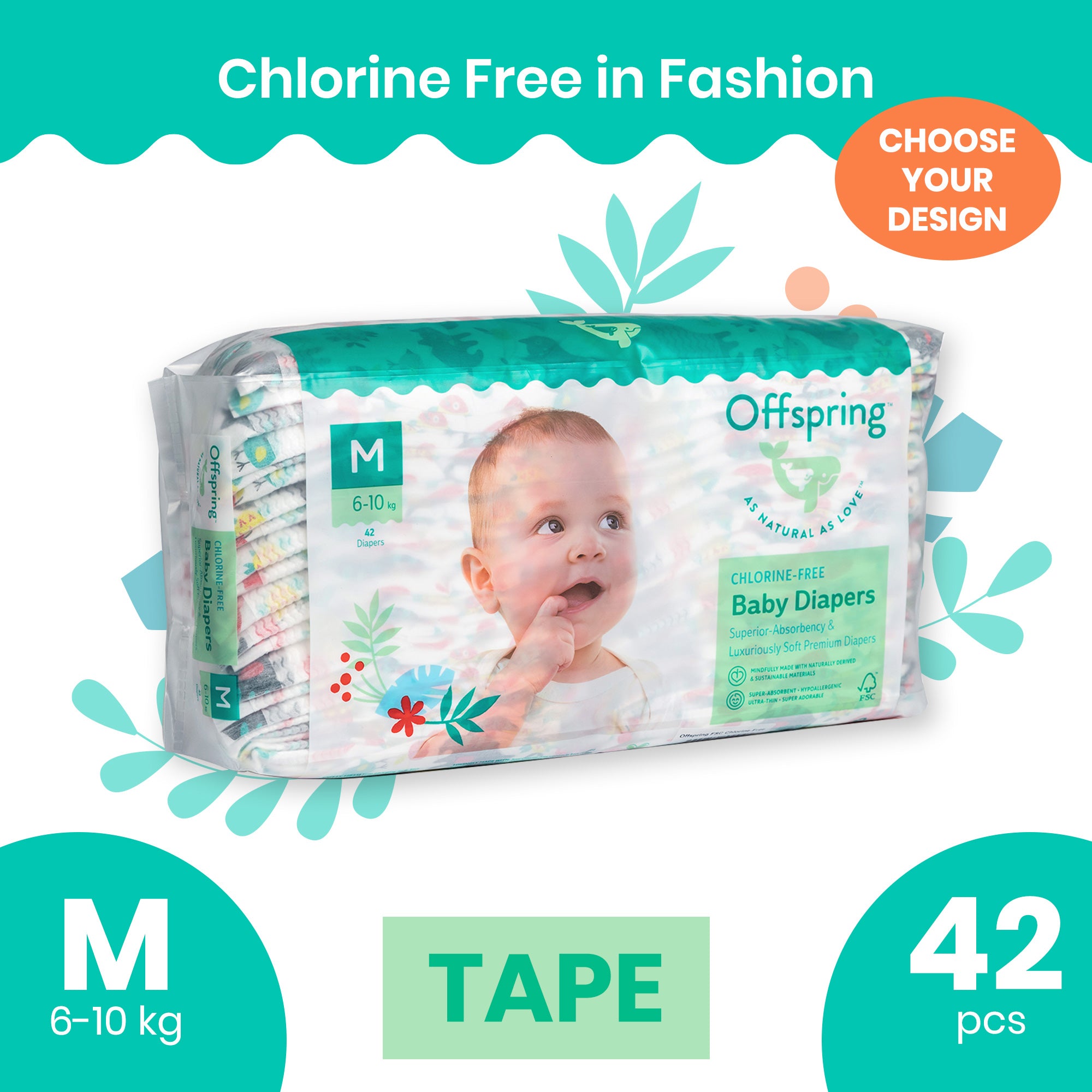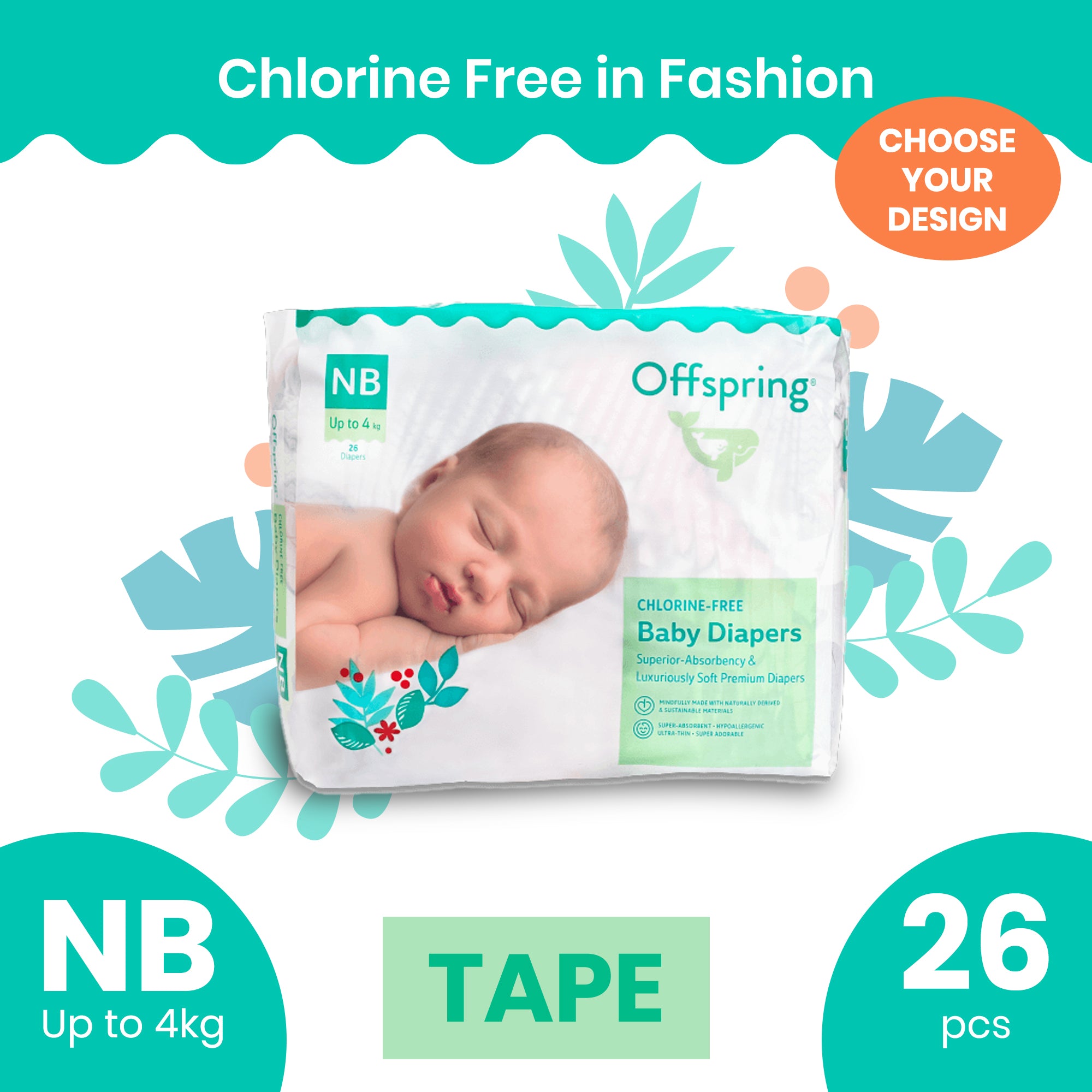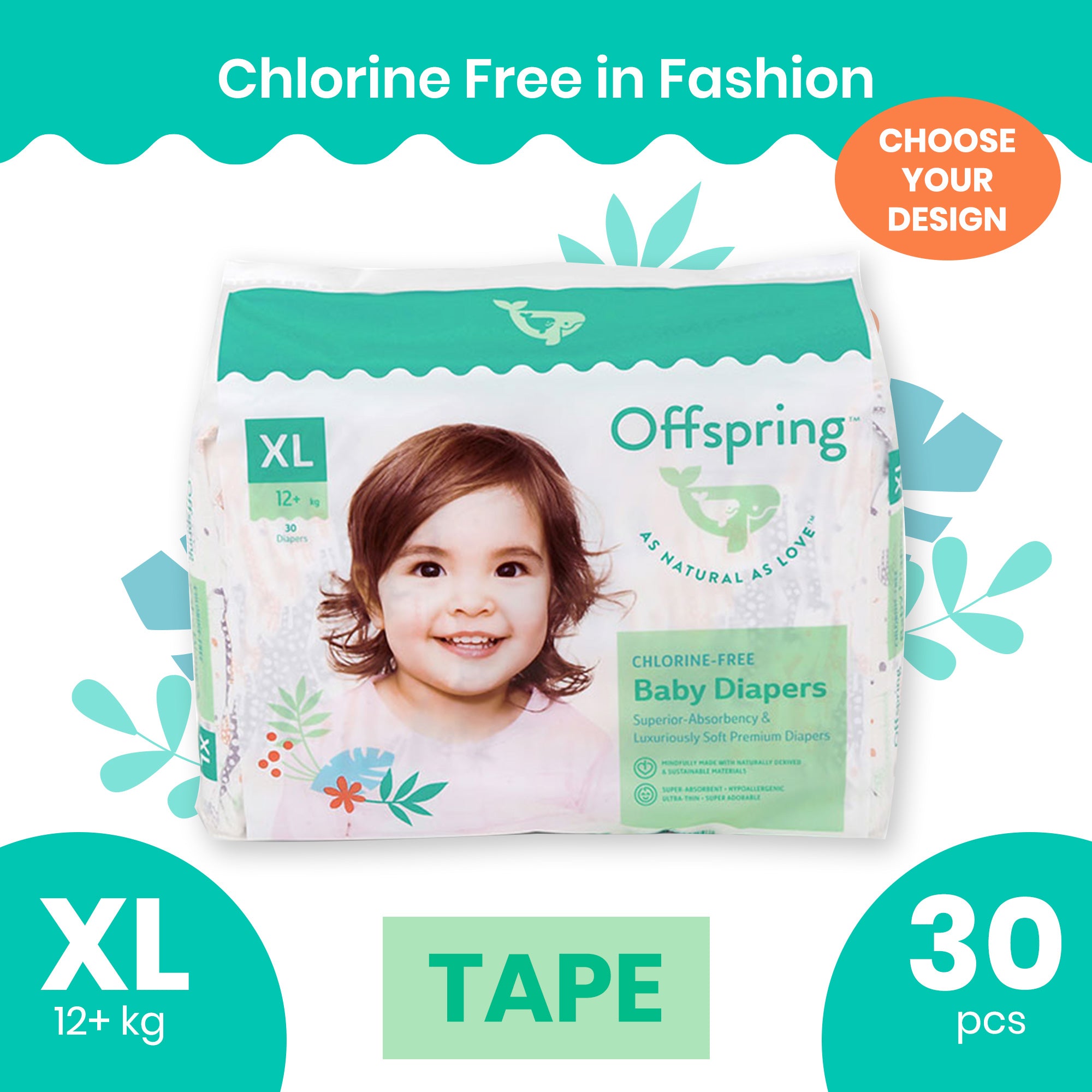 Offspring Chlorine-Free Fashion Diaper, TAPE