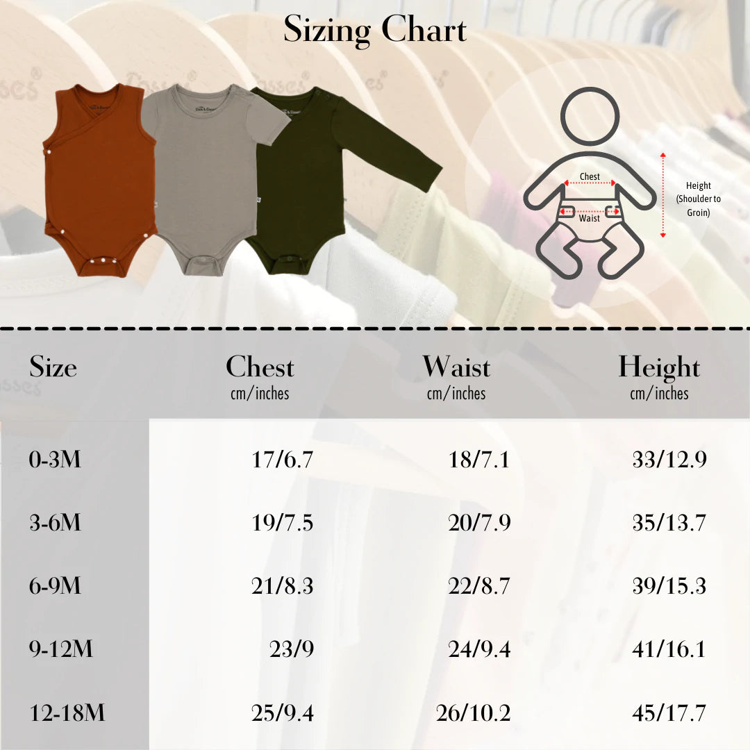 5 sizes available for every noticeable growth stage: 0-3M, 3-6M, 6-9M, 9-12M, 12-18M.