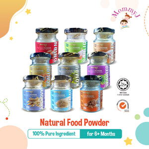 MommyJ Natural Food Powder for 6M+, 9 Flavors (Anchovy, Chicken, Scallop, Whitebait, Garlic, Kombu, Mushroom, Onion, Seaweed)