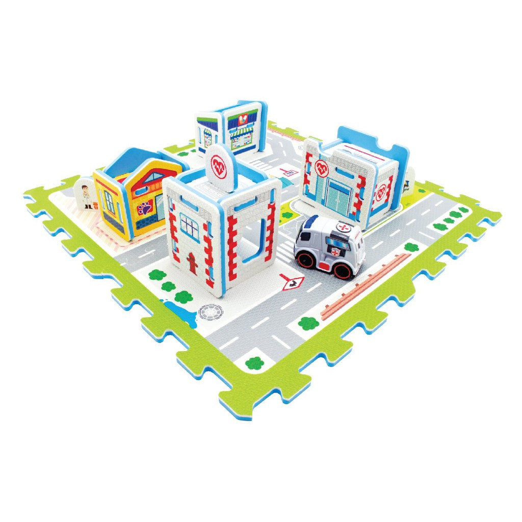 Toy car is included to be played on the mat.