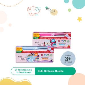 Bzu Bzu Kids Oralcare Bundle, Toothpaste + Toothbrush, 2 Flavors (Grape, Strawberry)