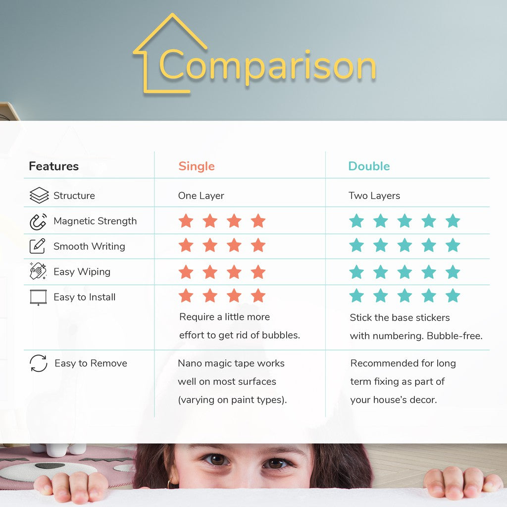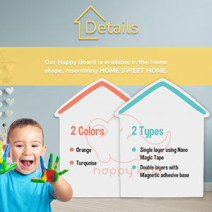 Happy Board is not a typical whiteboard, its built-in MAGNETIC feature allowing you to stick fridge magnet, magnet button and our add-on accessories such as storage holder, kisscut, alphabet and number stickers.
