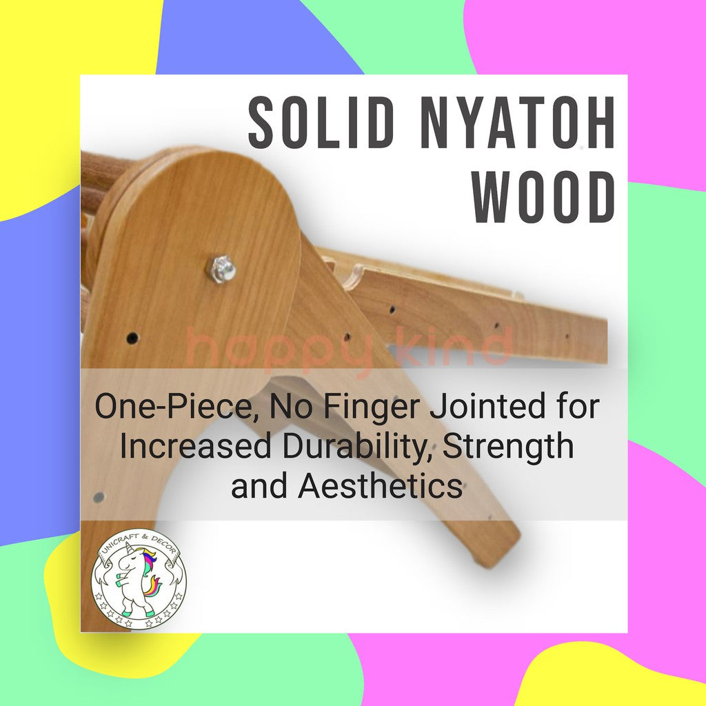 Material :˜Nyatoh solid wood (support sides and rungs), high density plywood (ramp) and pinewood (climbing holds)˜with quality matt clear coat finishing.
