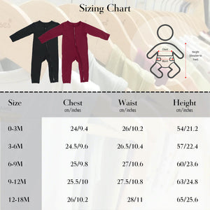 5 sizes available for every noticeable growth stage: 0-3M, 3-6M, 6-9M, 9-12M, 12-18M.