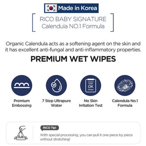 Rico Signature Organic Baby Wet Wipes (20s or 70s), Made in Korea