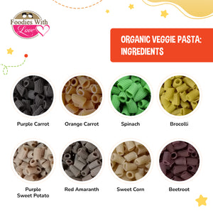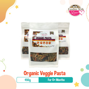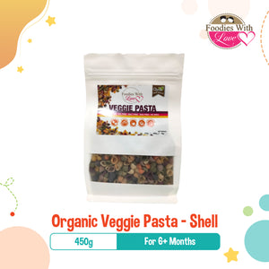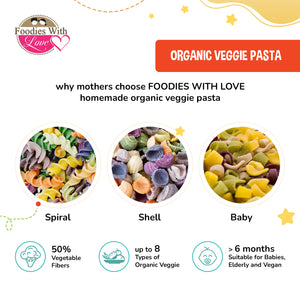 Foodies With Love Organic Veggie Pasta for 6M+ (450g), 3 Shapes (Spiral, Shell, Baby)