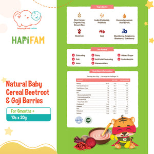 Hapifam HAPIHEROS Natural Baby Cereal, 4 Flavors (Beetroot & Goji Berries, Mixed Fruits, Original, Purple Sweet Potato)