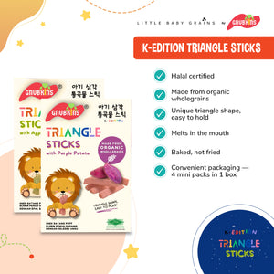 Gnubkins K-Edition Triangle Sticks for 6M+, 2 Flavors (Apple & Banana, Purple Potato)