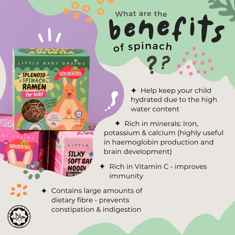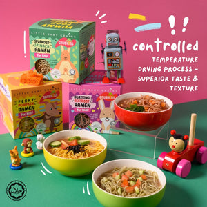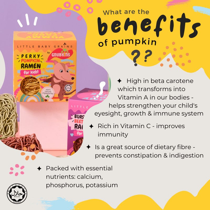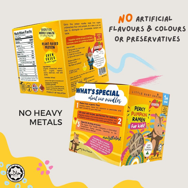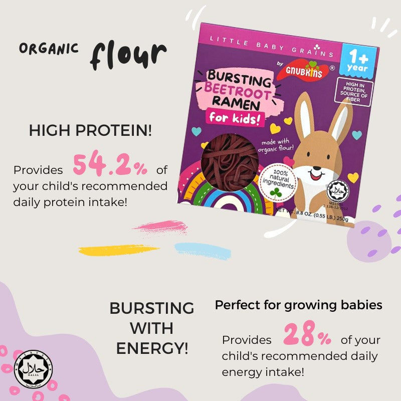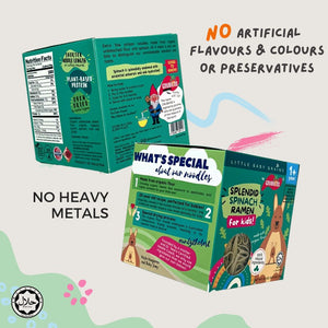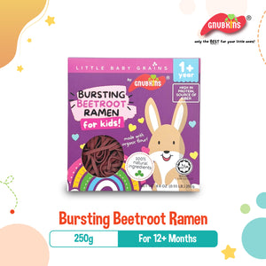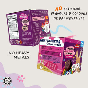 Introducing Little Baby Grains Kids Ramen for 12M+: made with premium ingredients, free from heavy metals*, and bursting with natural flavors! These delicious, individually-packed noodles come in 3 fun varieties: Beetroot, Pumpkin, and Spinach. Enjoy a bowl of clean, healthy, fast-cooking goodness in just 4-5 minutes. And with customized noodle lengths for kids, no cutting is needed! So for little tummies, it's a big YUM!